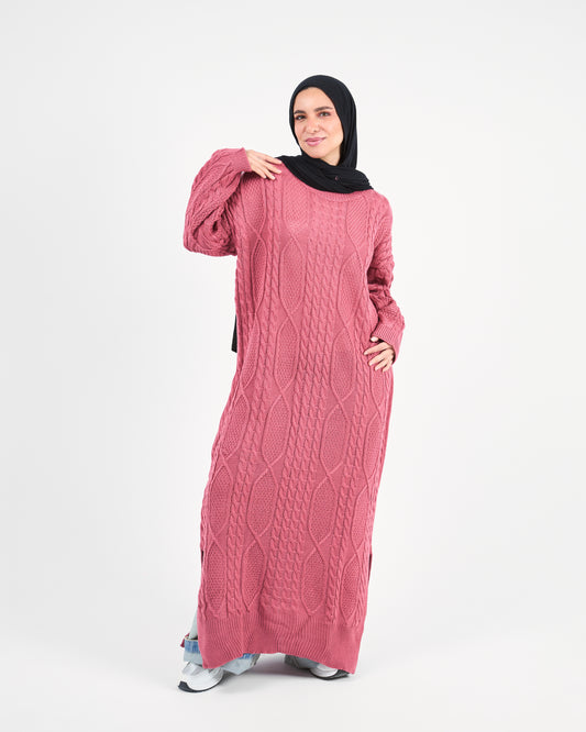 Longline Cable-Knit Sweater Dress in Kashmir pink