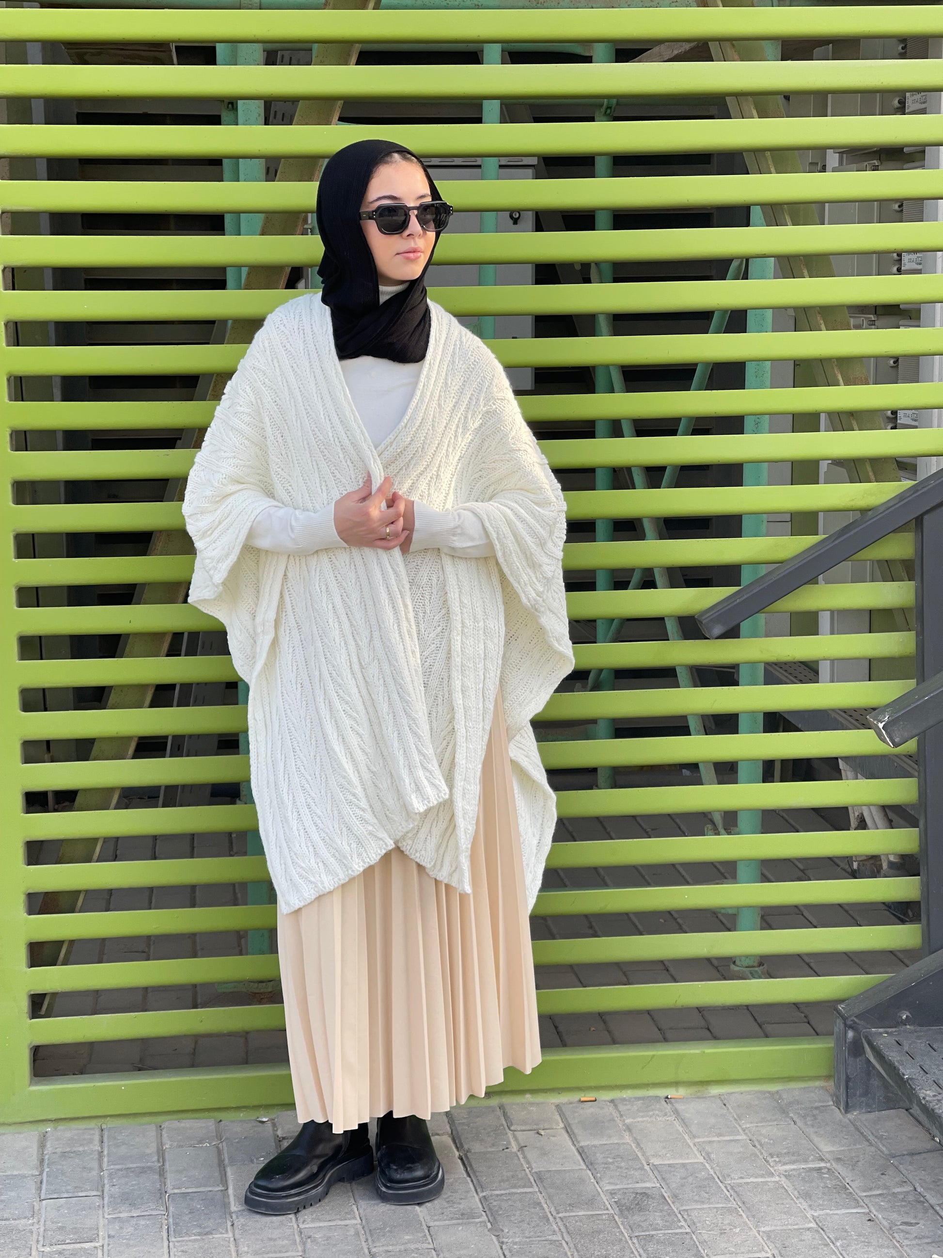 Cable-knitted Cape in off white