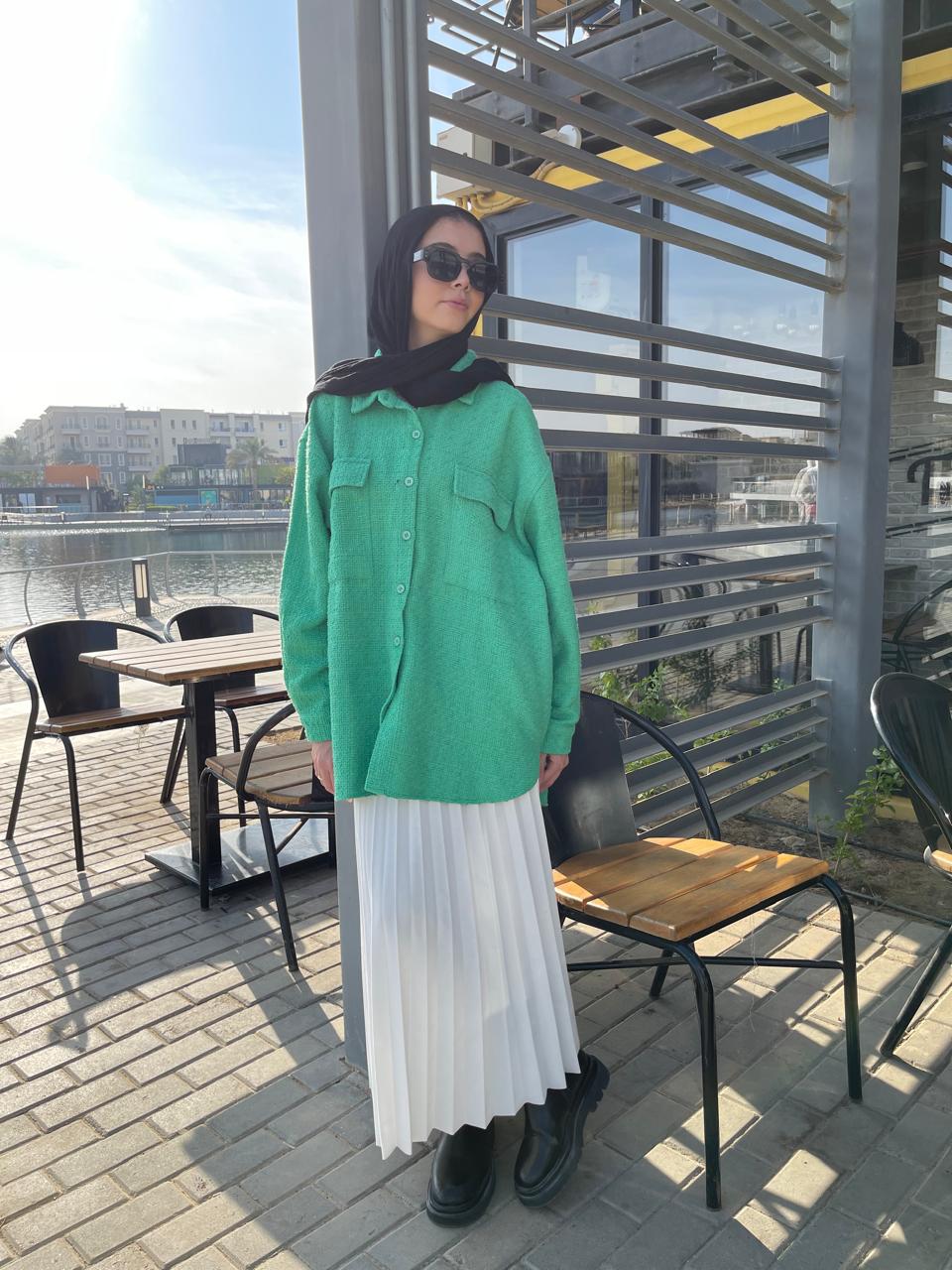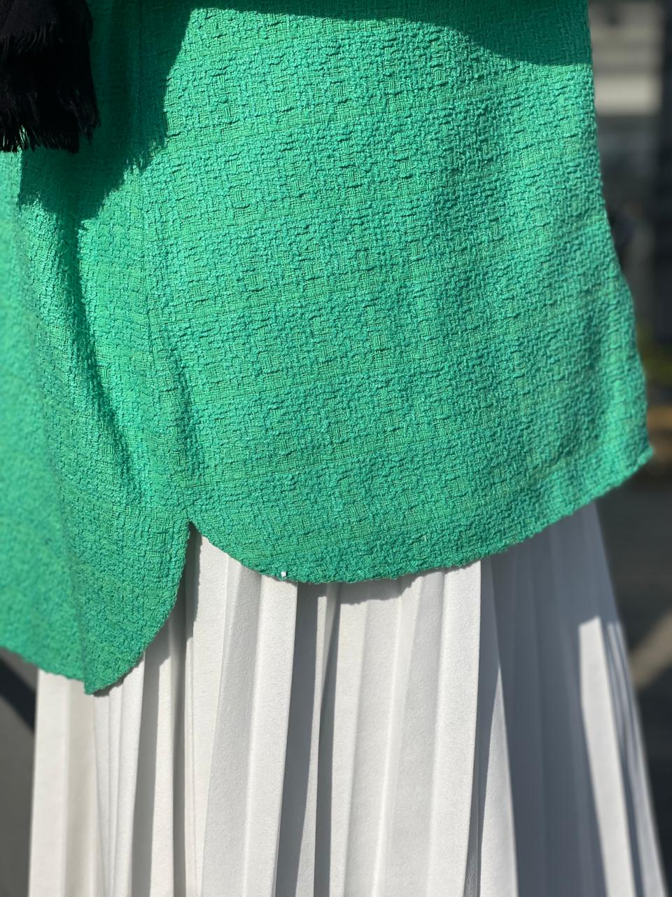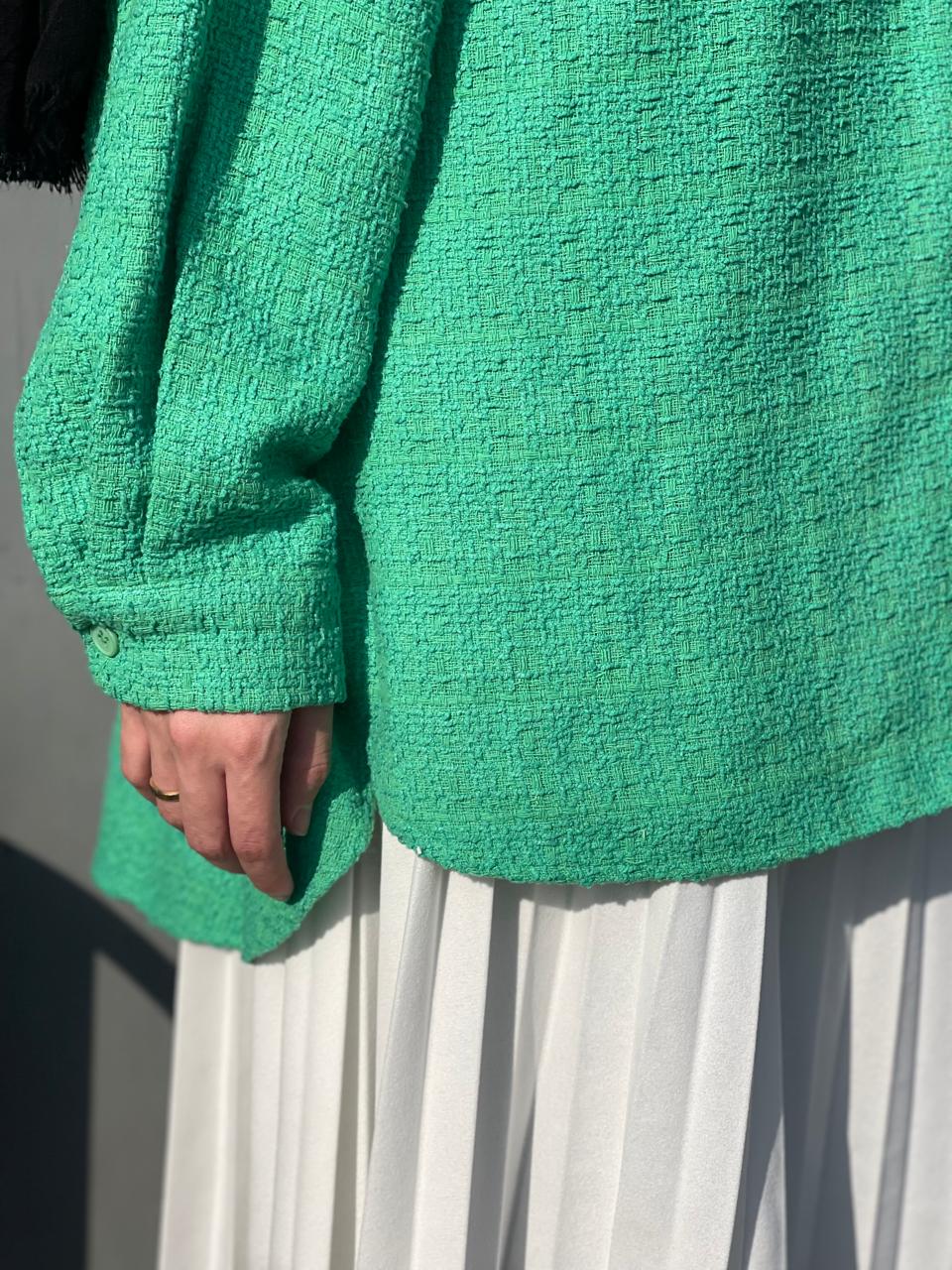 Effortlessly elevate your everyday look with our "Classic Wool-tweed Jacket" featuring a front button closure and chest pockets, Perfect for layering, it’s your go-to for chic casual days.