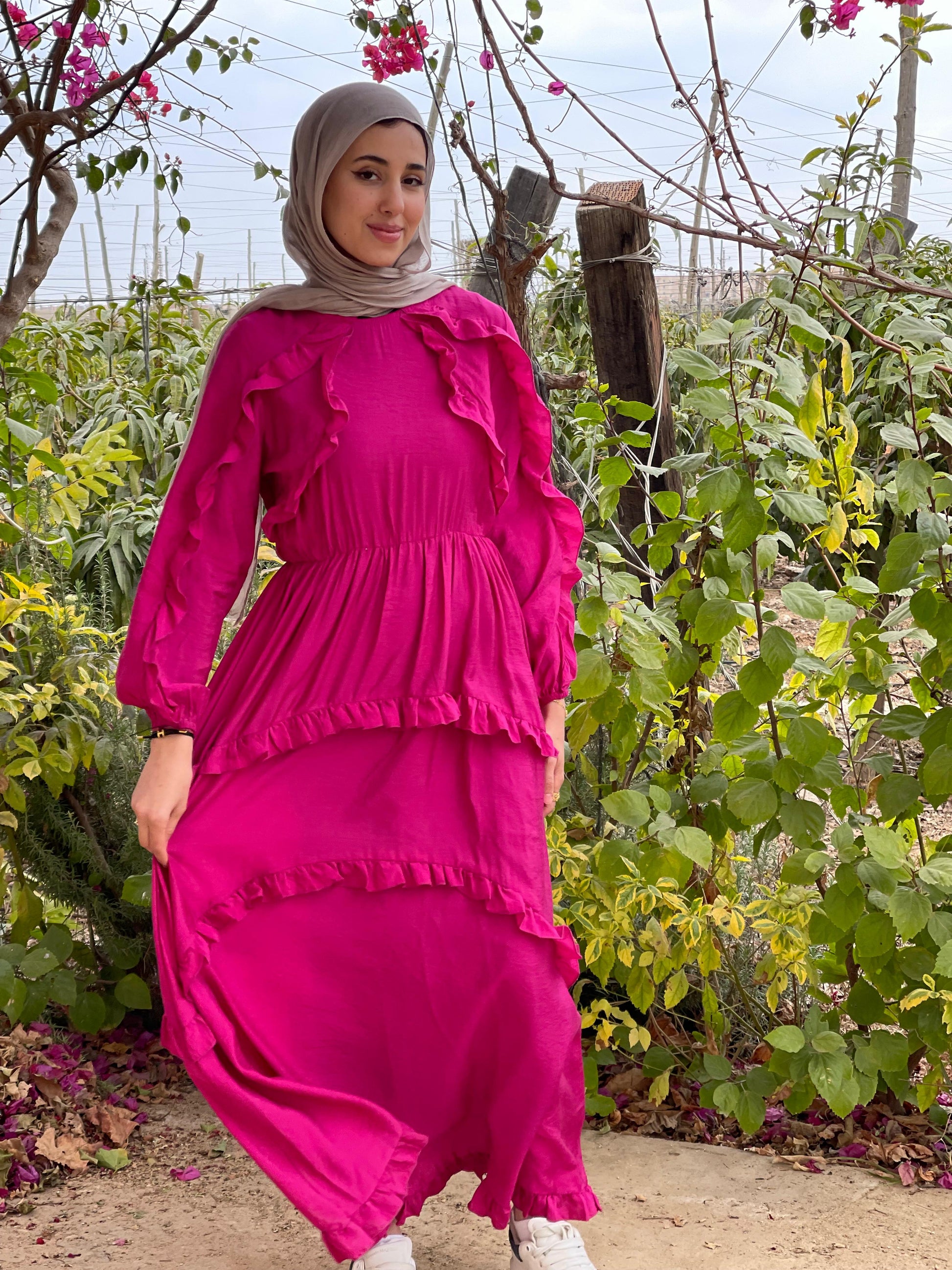 Plain Ruffled Dress (Fuchsia)
