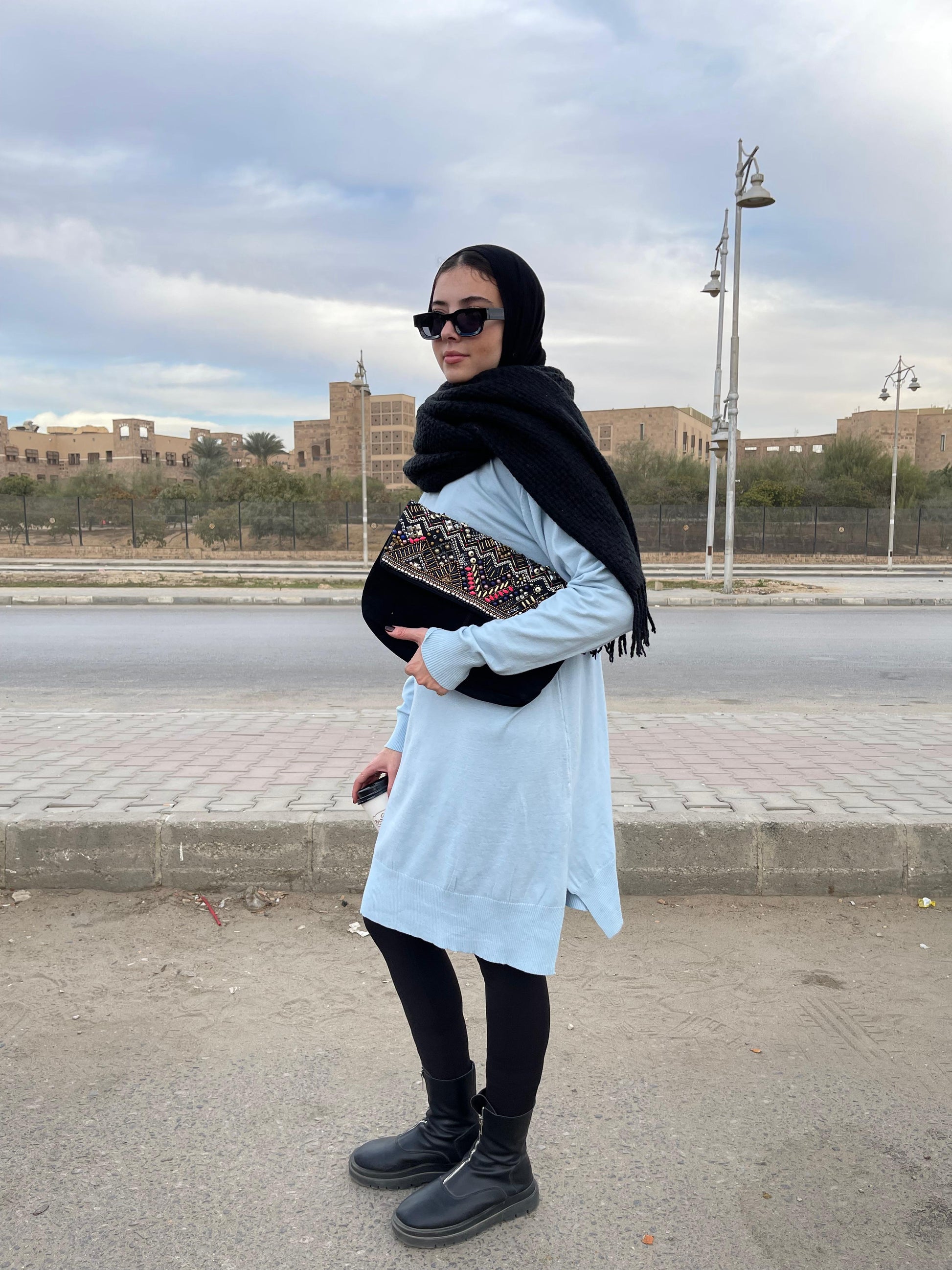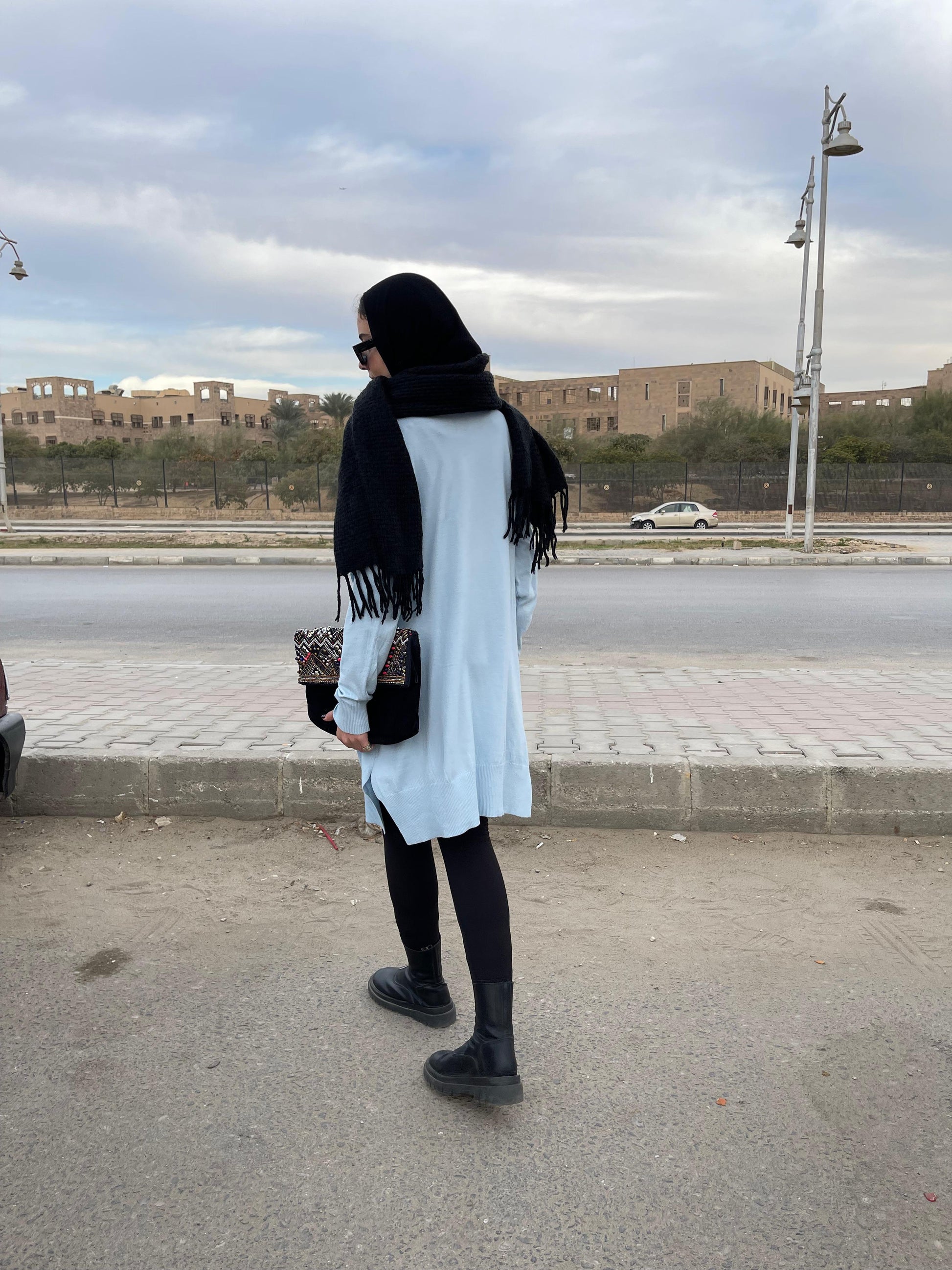 High-neck Longline Pullover in Baby Blue