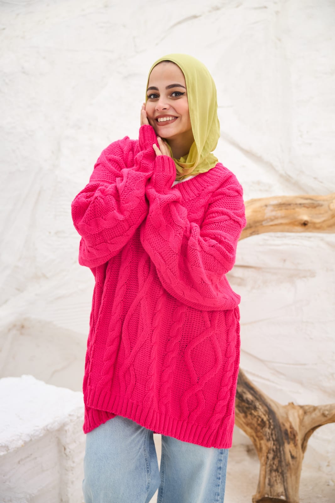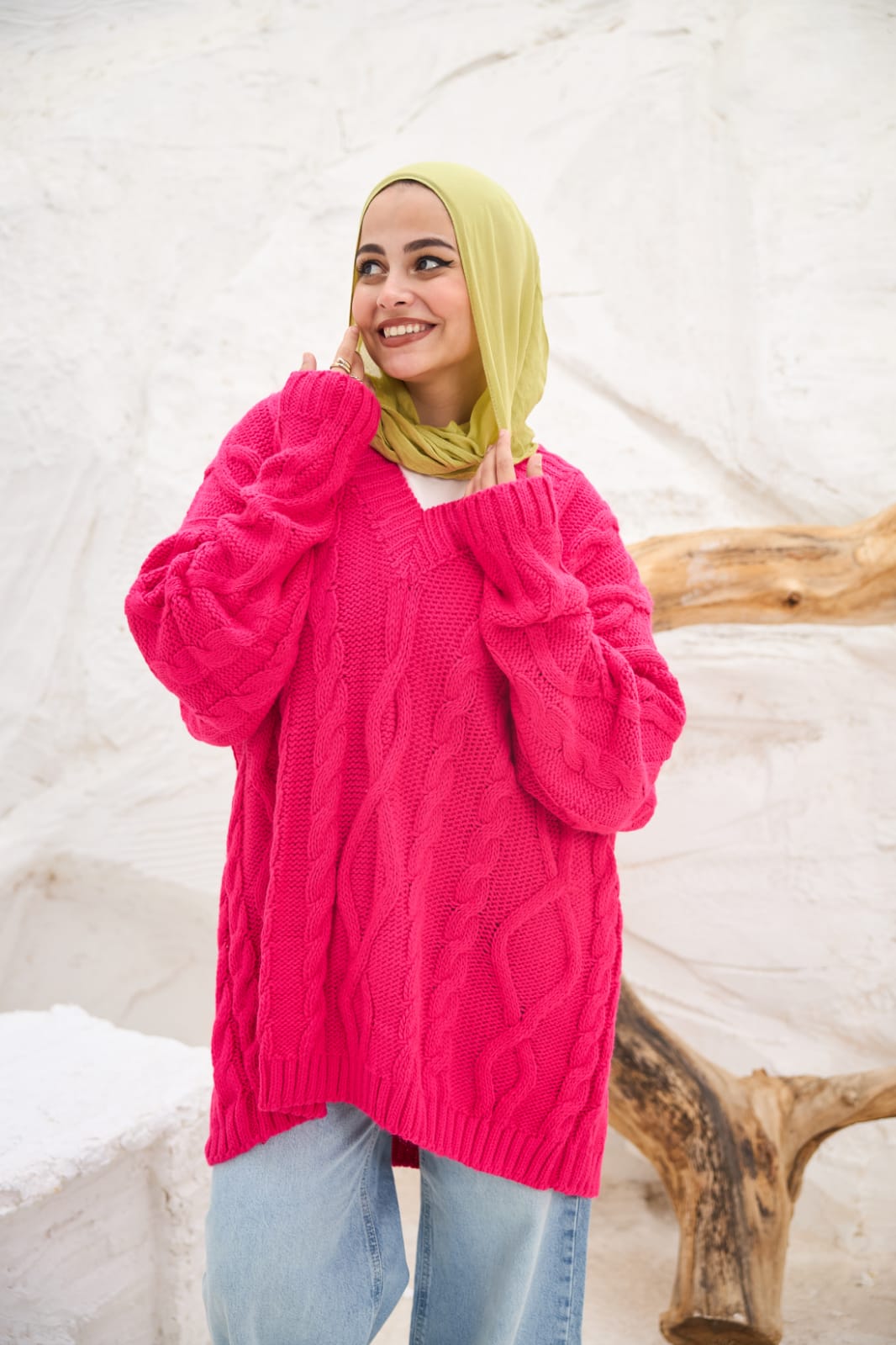 A winter essential made for warmth and elegance. " Cable-knit V-neck Sweater" adds effortless elegance to your everyday style with timeless cable-knit pattern and oversized fit.