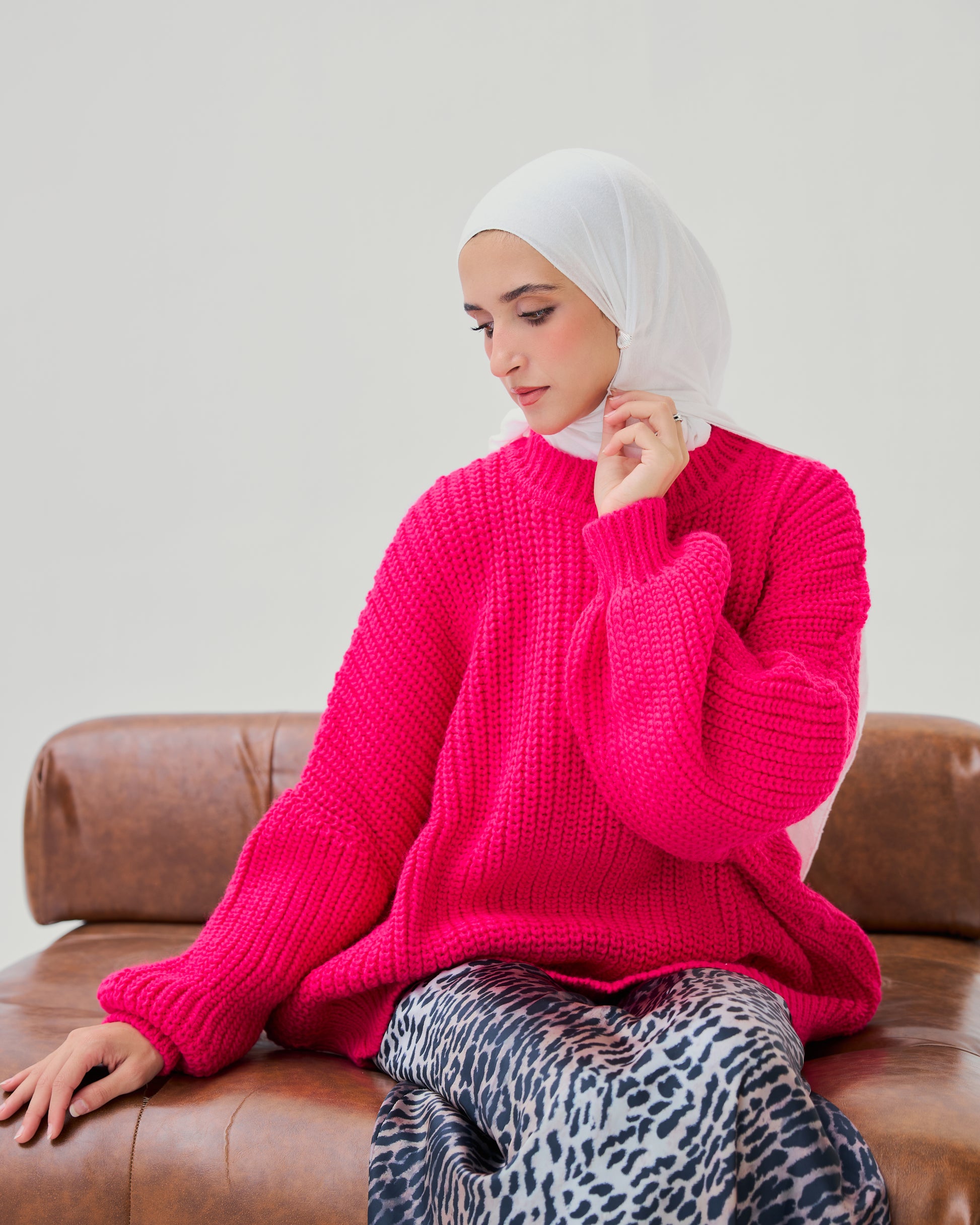 Oversized Chunky Knit Heavy Sweater in Hot Pink