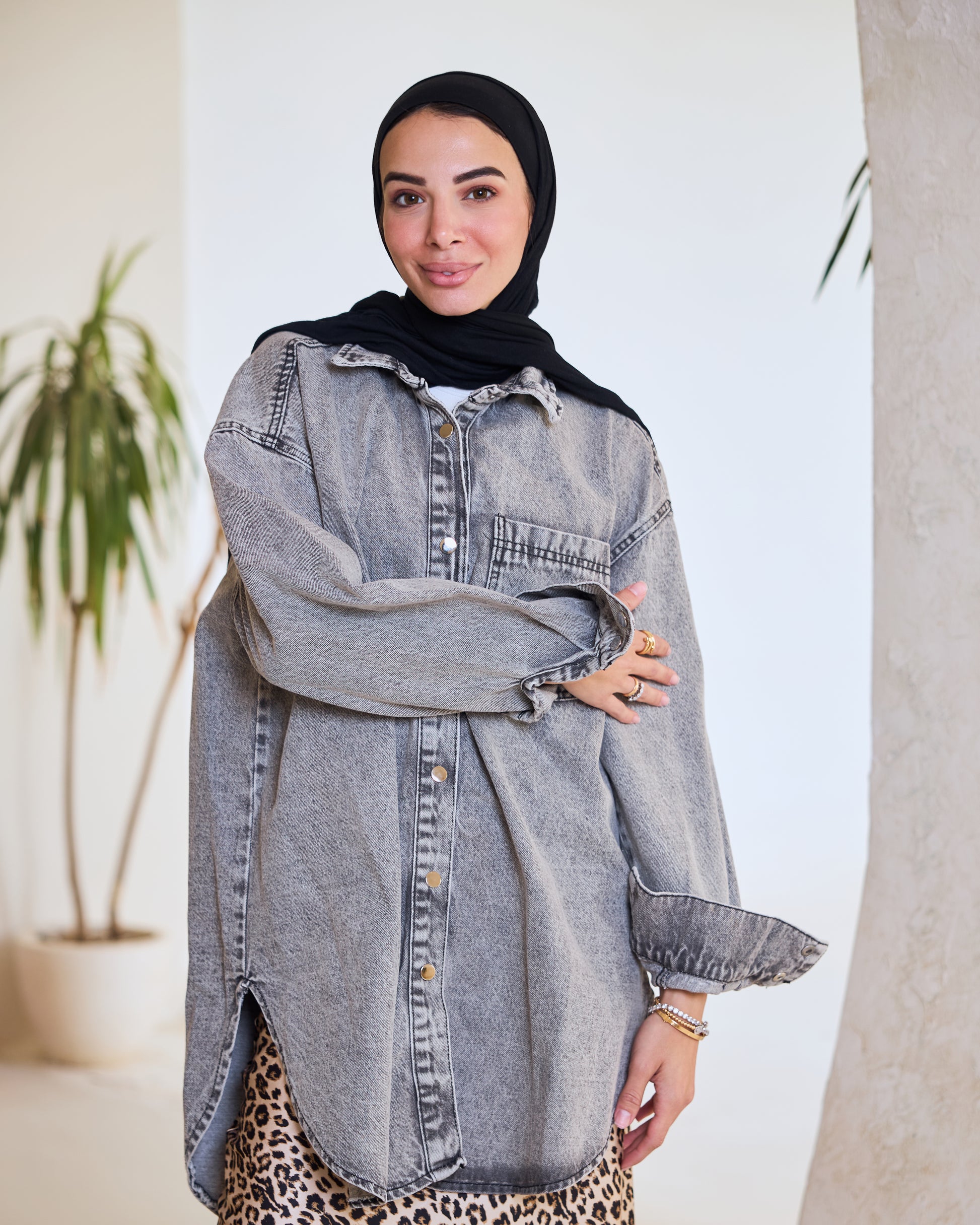 Elevate your casual wardrobe with this Washed Grey Denim Shirt, a perfect blend of edgy style and relaxed comfort. The vintage-inspired grey wash offers a sophisticated alternative to classic blue denim.