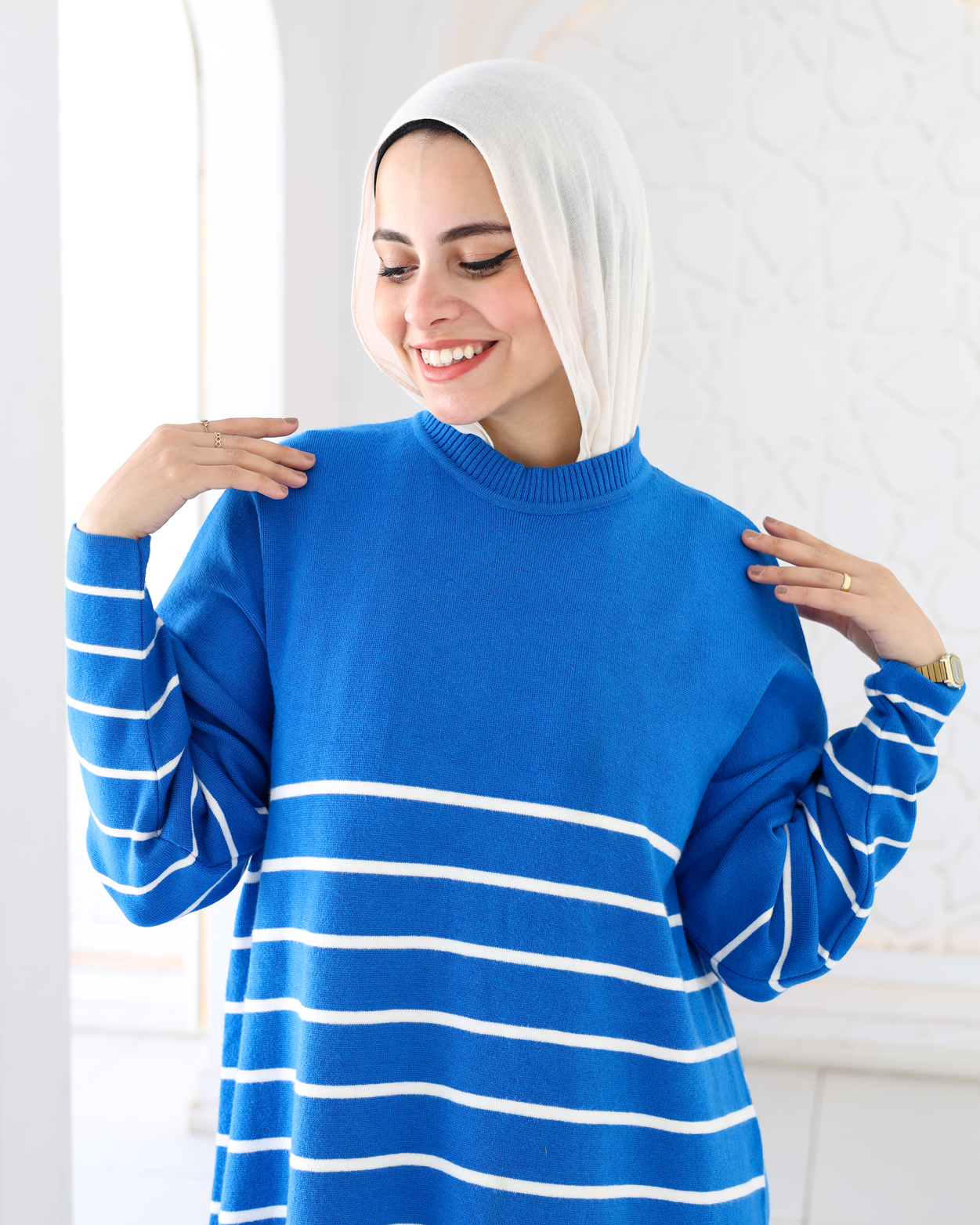 Oversized Stripped Dress in light Kintted fabric ,the piece of choice for the ongoing season for a comfy yet warm look.