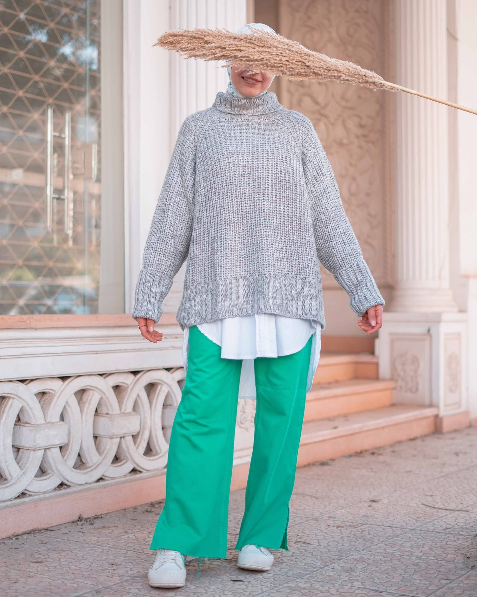Gray oversized sweater in luxurious soft fabric, sleek modern design for a refined and standout look on any occasion